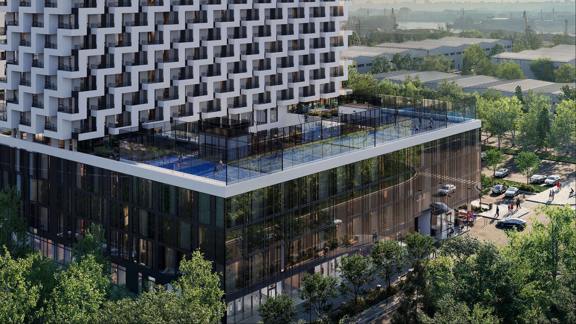 В комплексе будут работать падел-стадион, студия звукозаписи, спортивный клуб Smartass, SPA с диско-саунами, коворкинг Spaces, бар Riot, руфтоп-ресторан North 13* и ивент-локация на 500 человек.