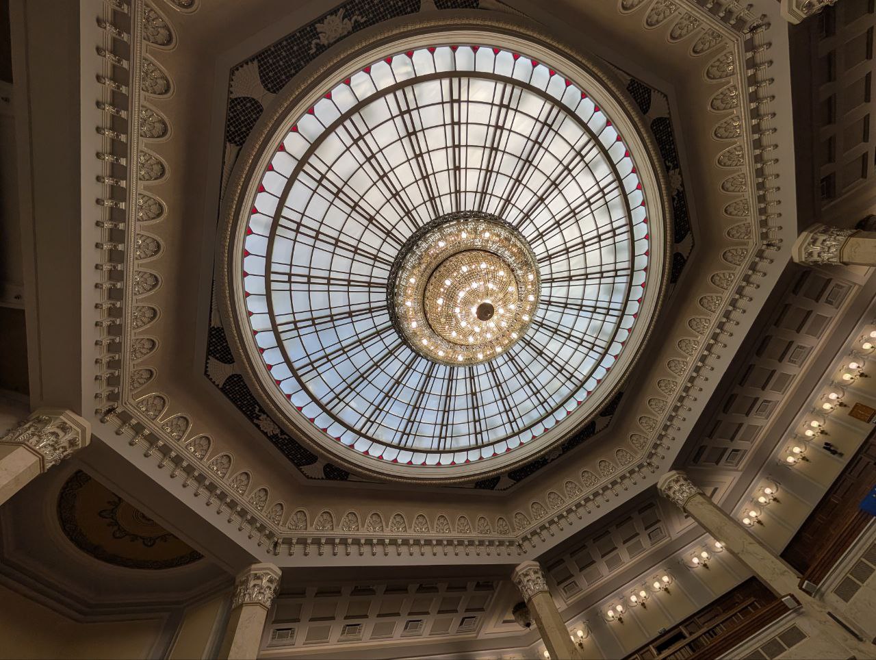 Народный депутат Марьяна Безуглая сфотографировала люстру на потолке Верховной Рады во время пленарного заседания. Она критически заметила, что лампочки были включены «на полную».